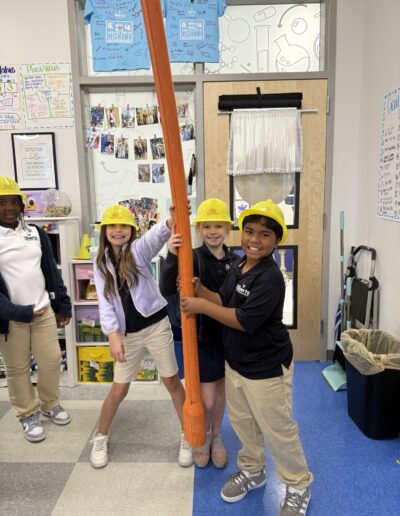 The students rolled up their sleeves to help construct the main model, then teamed up to create their own smaller versions. Throughout the activity, safety was the top priority. Corey emphasized the importance of rubber hoses and blankets for insulation and ensuring every project included a clearly marked “drop zone” to protect against potential falling hazards.